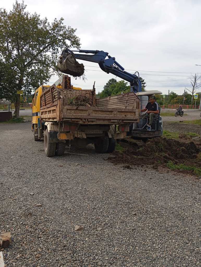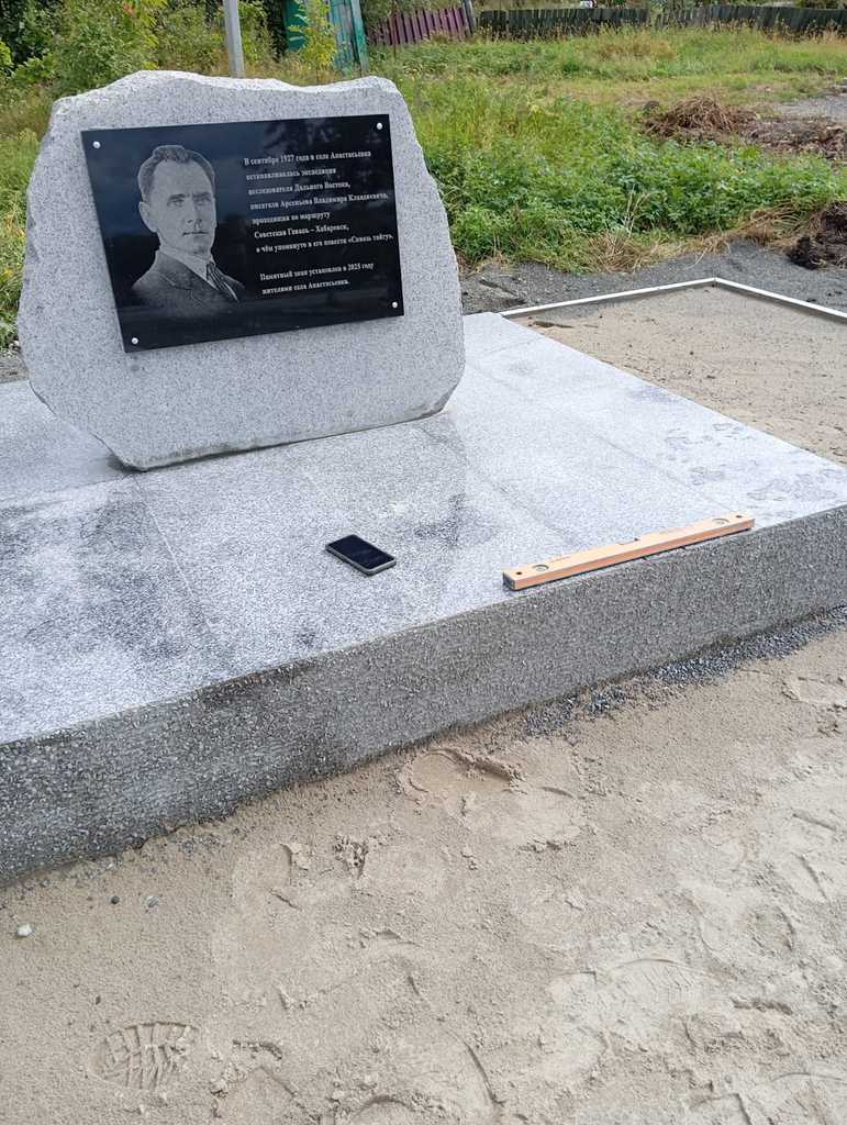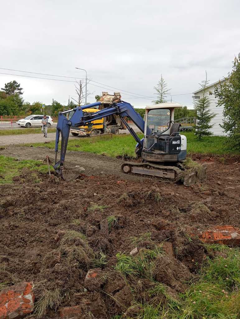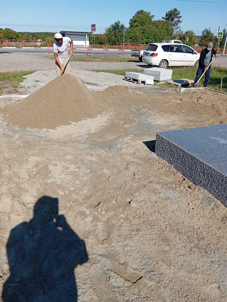 На территории ТОС «Искра» продолжается реализация проекта «Владимир Арсеньев. Память». Подрядчик приступил к земляным работам: территория расчищена от верхнего слоя, отсыпана пескогравием для укладки брусчатки. Обустроен подиум, на нём установлен камень с мемориальной доской. Следующий этап работ – укладка брусчатки, установка информационного стенда, малых архитектурных форм и озеленение.
